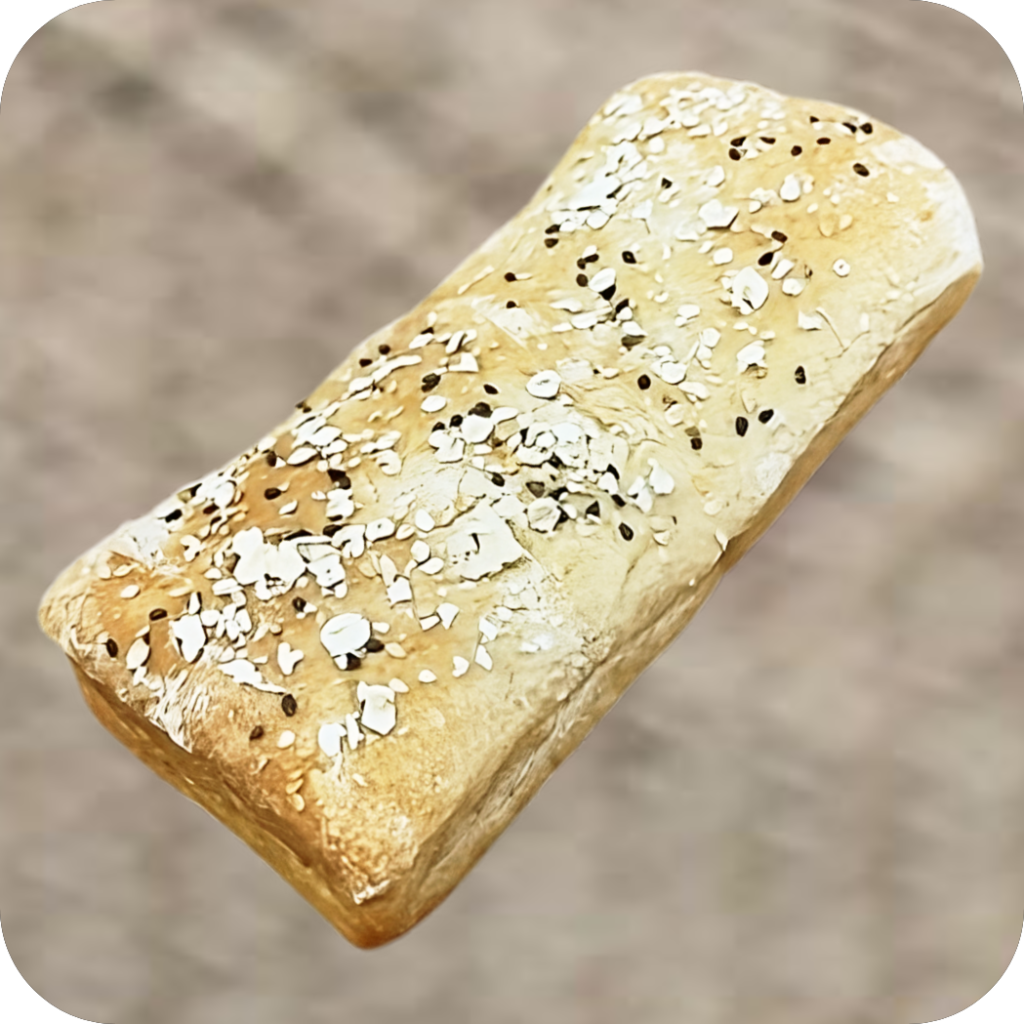 Casca crocante e interior aerado, ideal para sanduíches rústicos e refeições leves com toque artesanal.